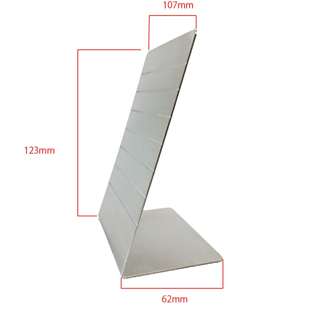 ステンレス素材にヘアライン加工を施した、シンプルかつ高級感のあるプライススタンドです。